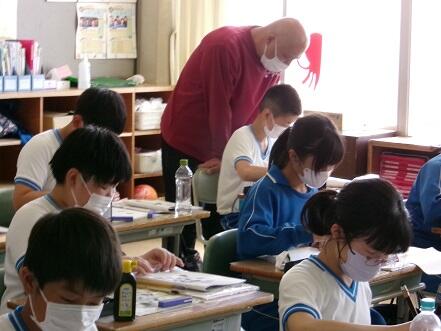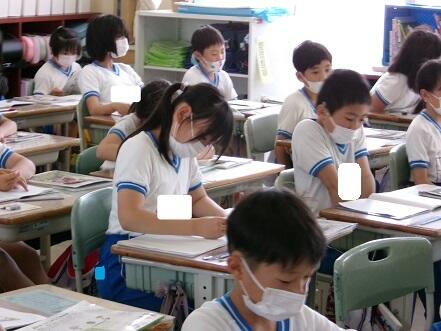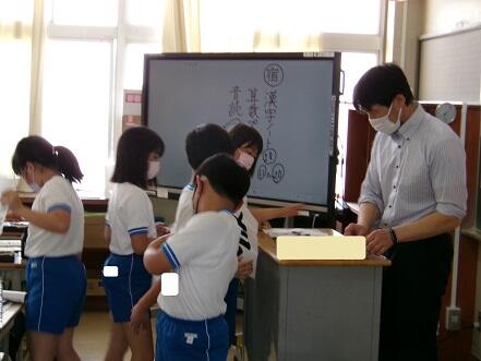また、学習用具を床に落としてしまった友だちに、拾って届ける姿が見られました。心が温かくなりました。今後も、本校の重点目標「やさしく たくましく 前向きに」に迫っていきます。