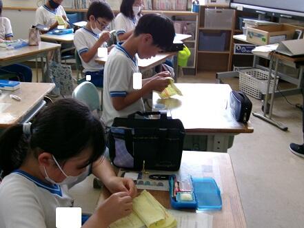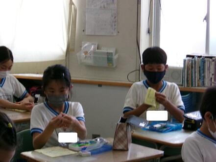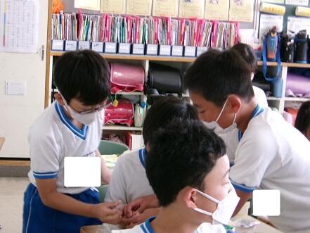 5年生は、家庭科で、手縫いの学習に取り組んでいました。互いに教え合う姿が見られるなど意欲的でした。