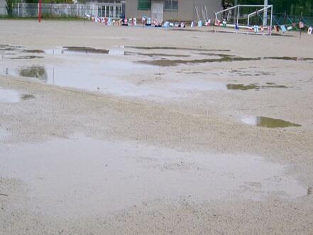 先程、安心安全メールでお知らせしましたとおり、昨日からの雨の影響で、校庭が競技困難な状態にあること、現在も小雨が降っていることから、運動会を明日に延期します。大変残念ですが、ご理解の程、よろしくお願いします。