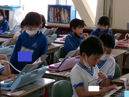 3年生の授業の様子です。ペアで互いの演奏を聴き合いながら、よりよい演奏を目指していました。