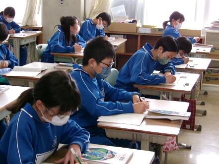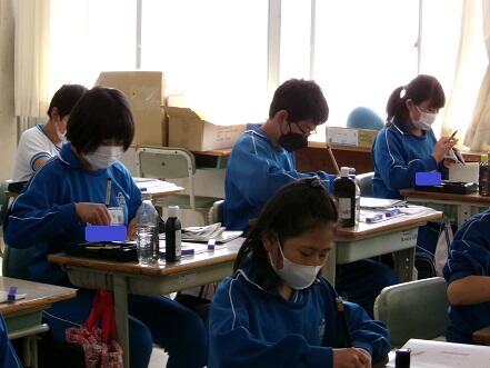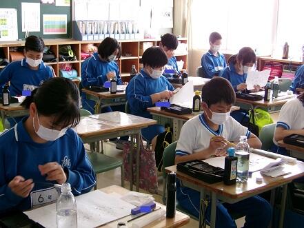 6年生の授業の様子です。習字と図工の学習を行っていました。いつでも落ち着いた態度で学習に取り組んでいます。