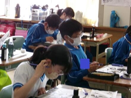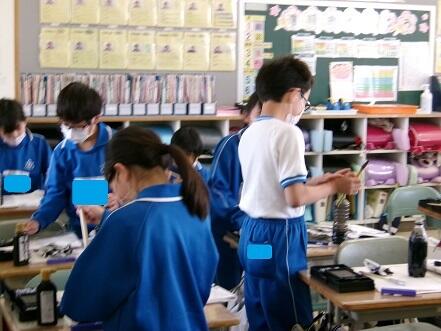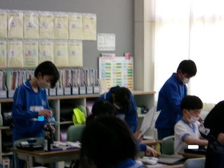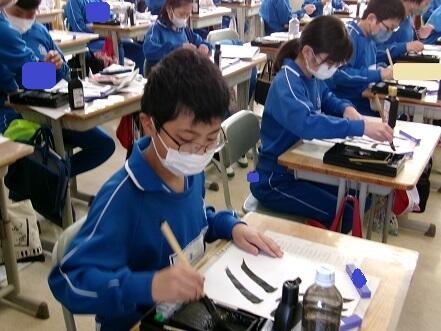 5年生は、習字の学習に取り組んでいました。教室を訪問した時には、後片付けを行っていました。静かに、手際よく片付けていました。