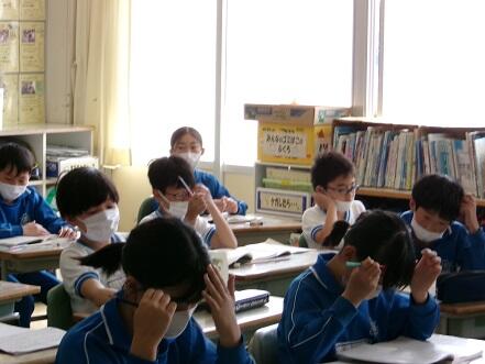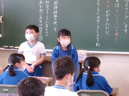 朝の様子です。今月の歌(校歌)を元気に歌う姿、日直の朝の会の進め方、担任の先生の話をしっかり聴く姿勢等、素晴らしかったです。新学期がスタートして約1ヶ月。疲れが出る時期ですが、どの学年の子どもたちも朝からとても落ち着いています。「1日の計は朝にあり」