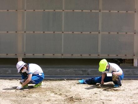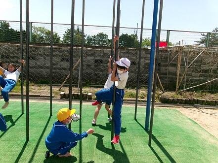 今日は、朝から青空が広がり、とてもよい天気となりました。子どもたちは、笑顔で元気一杯に外遊びをしていました。先生方も一緒に遊んだり、子どもたちを見守ったりしていました。