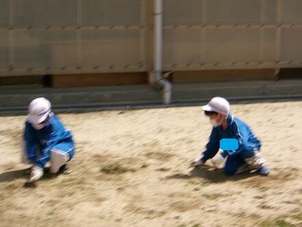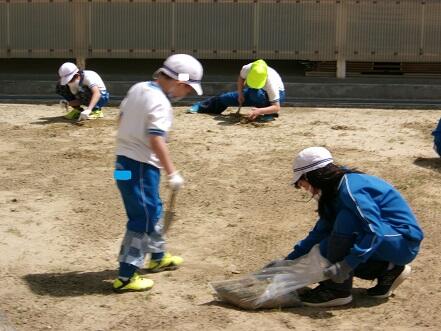 外掃除の子どもたちは、班長を中心に一生懸命草むしりをしていました。学校がきれいなのは、子どもたちが心を込めて掃除に取り組んでいるおかげです。