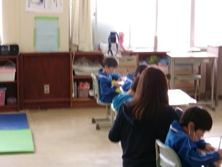 1年生は、算数で数字の学習を、2年生は道徳の学習を行っていました。