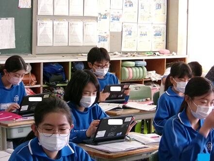 6年生は、外国語の授業でタブレットを使っていました。今後も、授業内において、効果的にタブレット活用していきたいと思います。