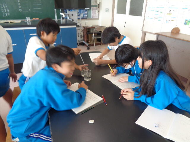 5年2組 理科 ものの重さ 水に溶けると重さは変わるのでしょうか。
