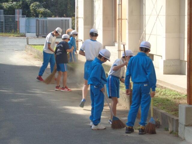 6年生が体育館の周りを掃除していました。少しでもきれいにしてお迎えできればという考えた行動のようです。心の成長が見られます。