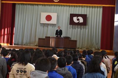 初めに校長先生より、冬休みを迎えるにあたり、3つのお話がありました。