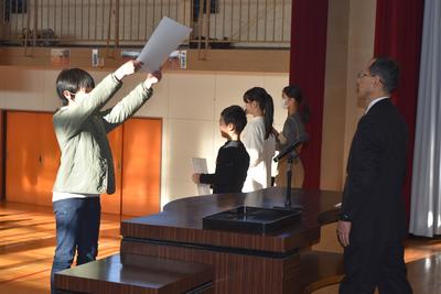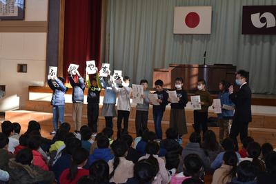 続いて、1年、3年、5年の児童から、2学期の反省と冬休みの計画について「冬休みは健康に気をつけて、お手伝いをたくさんしたい」などの発表がありました。