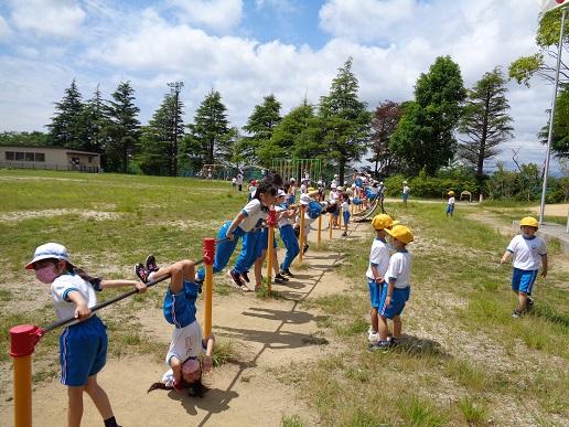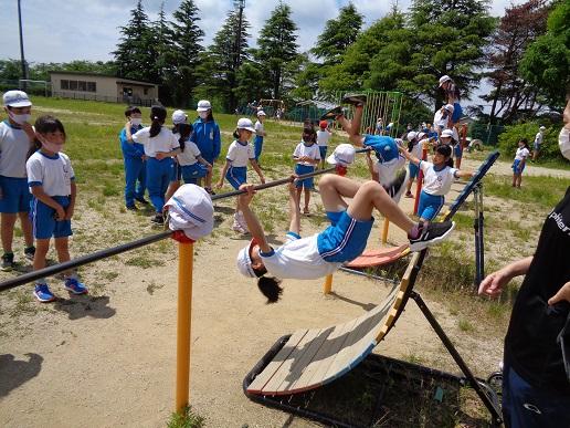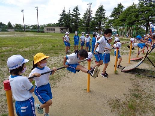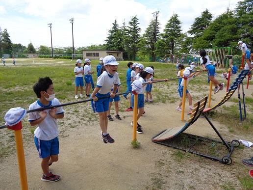 鉄棒が人気 2021年6月17日 10時46分 最近、大休憩の時間に鉄棒で遊んでいる子どもたちが増えてきました。逆上がり、後方支持回転等、色々な技にチャレンジしています。身体を巧みに動かす能力は、小学生の時期にぐんと伸びます。