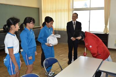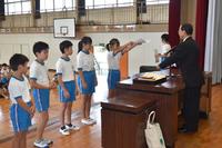 まず初めに、第73回福島県下小中音楽祭第2部合奏に参加した吹奏楽部の表彰。続いて、バレーボール、空手、剣道の各スポーツ少年団の表彰でした。それぞれの部門で、大活躍でした。