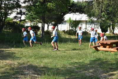 警察役による泥棒役の全員逮捕を目的とする、「ケイドロ」と「鬼ごっこ」です。しおかぜの森も活動範囲ですので、なかなか捕まえるのが大変そうでした。ルールが単純なだけに、学年を問わず人気のあるゲームです。