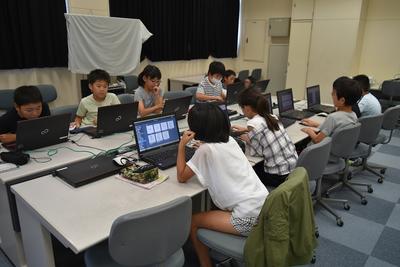 今日の活動は、ジャストスマイルを駆使して、メッセージカードやしおり、お絵かきなどに挑戦です。パソコンクラブの児童は、かなり上手にキーボードやマウスを操作できるので、面白いアイデアを出して、パソコンの性能を生かした作品が多いようでした。できあがりが楽しみです。
