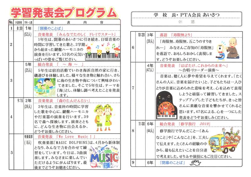 本日は校内学習発表会でした。全学年の発表が見られるとあり、子どもたちも自分の発表にドキドキ、他の学年の発表にワクワクしている様子がよく伝わってきました。