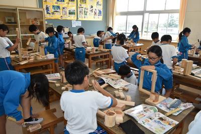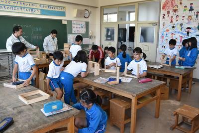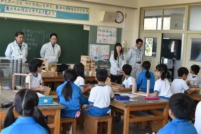 10月28日(月)には、4年生の木工出前講座が行われました。 これは、県が実施している「木とのふれあい創出事業」の出前講座として行われたものです。 講座では、福島県いわき農林事務所と田人林業の方々を講師にお迎えしました。