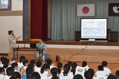 今回の出前講座では、5.6年生が勿来土木事務所と砂防ボランティアの方々を講師にお迎えし、「洪水や土砂災害から身を守るために」について学習しました。