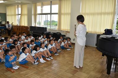 さて、始めてリコーダーを扱う3年生を対象に、東京リコーダー協会の井川由紀先生をお招きし、リコーダー教室を行いました。