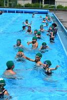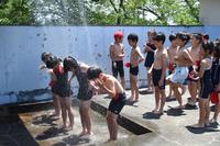 6月6日(木)以降天候を見ながら、学年またはブロック毎、プール開きを予定していますが、全校生のトップバッターは4年生で、本日2校時目にプール開きを行いました。