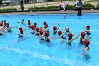 東北地方も梅雨入りし、なかなかプールに入れる条件が整わない日が続いていましたが、ようやく14日(金)3年生と2年生が初泳ぎを楽しむことができました。