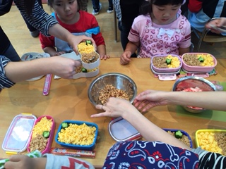 「お母さんと一緒に作ったそぼろ弁当、おいしかったよ。」