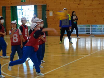 上学年の力強いボールを避けながら、低学年の子も思いっきり投げて活躍していました。