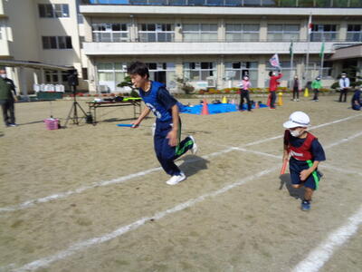 1・2年生 → 3・4年生 → 5・6年生 の順に走り、声援に応えるよう最後まで走り抜く姿がありました。