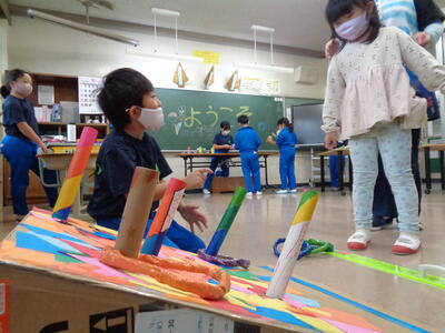 1・2年生が『お・も・て・な・し』をしました。子どもたちで話し合いをして進めてきたので、楽しい遊びが盛りだくさんになり、大盛り上がりで終えることができました。