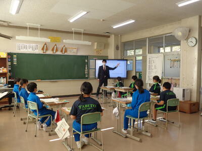 田人米販売、中学校も学年ごとに総合的な学習の時間のまとめを発表をしました。