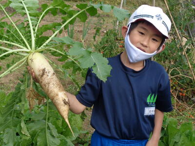 5・6年生は自然薯を育て販売したり、自然薯について調べたことを発表したりしました。