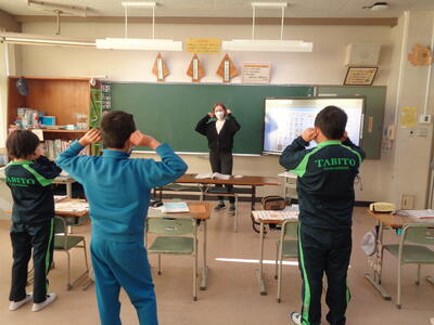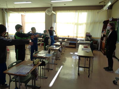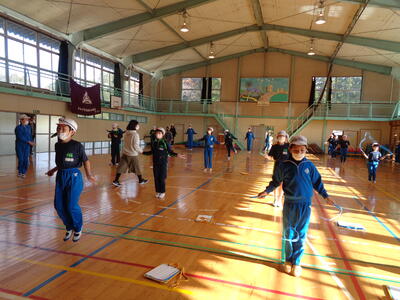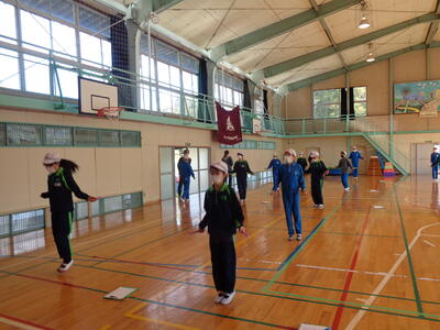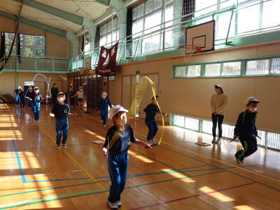 大休憩を活用し、体力づくりに向けた「ピョンピョンタイム」が始まりました。
