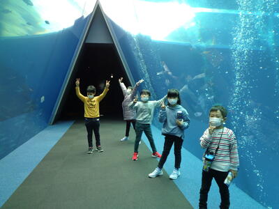 悪天候の中での出発でしたが、アクアマリンふくしまに到着すると青空が見えはじめ、