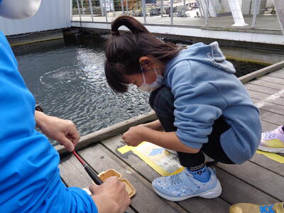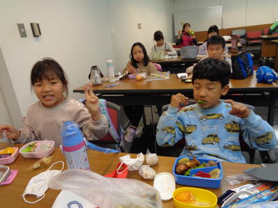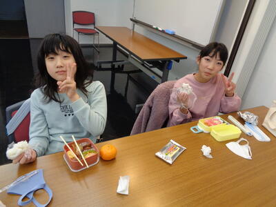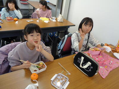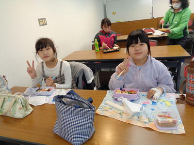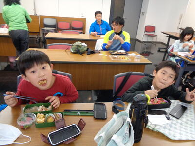 全員が魚を釣ることができました。調理を待つ間は、お弁当の準備です。