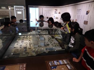 まずは、全校児童でこの施設についての話しを聞きました。おおきな文字盤には、東日本大震災が起きてから今までの時間が刻まれていました。原子力問題が全て解決したとき、その役目を終えるそうです。