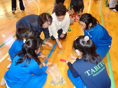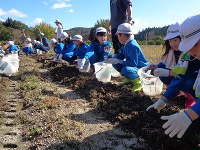 11/14(木)に、地域交流会を行い、1~4年生は、昔遊びや遊んだことのないものでゲームをして交流を深めました。5・6年生は、自然薯汁の作り方を学んだり、実際に自然薯をする体験をさせていただきました。