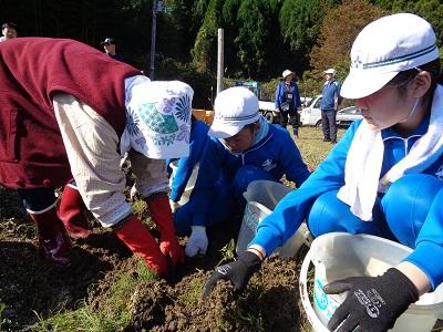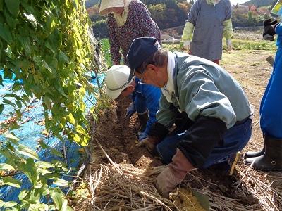 11/11(月)に6月に心を込めて苗植をした自然薯を収穫しました。田人自然薯の会のみなさま、公民館の方々にお世話になり、立派な自然薯を収穫することができました。