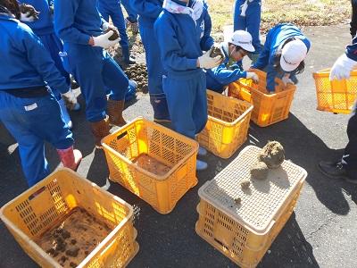 収穫した後は、種芋を大きさごとに分ける作業をしました。