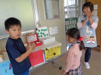 11/7(木)に田人保育所のお友だちが小学校に来てくれ、1・2年生がおもてなしをしました。1・2年生は、この日のために、ゲームを考えたり、プレゼントを用意したりと、生活の時間に準備をしてきました。当日は、みんなで仲良く過ごすことができ、大成功でした☆