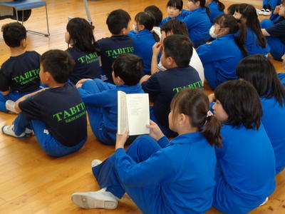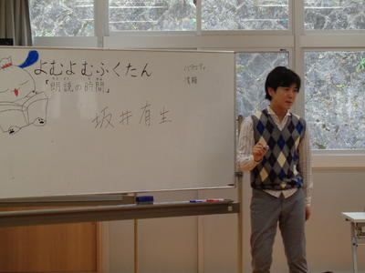 最後に、「ちびまるこちゃん」の朗読を聞きました。キャラクターによって声色を換えて読むなど、情景が目に浮かぶような、すばらしい朗読でした。
