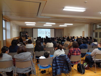 講師の先生として、医療創生大学教授の中尾先生をお招きし、田人小・中学校の児童・生徒、その保護者と教職員を対象に行われました。