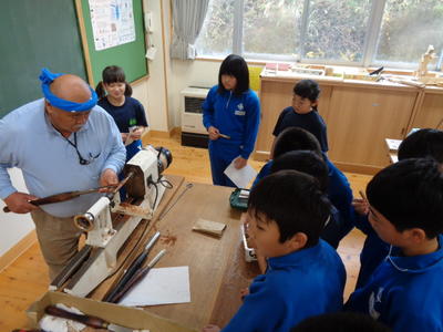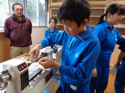 今日、12月18日(水)は、豊田林業の方々をお迎えして、「木工教室」が行われました。昨年は「ティッシュボックス作り」に挑戦しましたが、今年は「高級木工ボールペン」を作成しました。