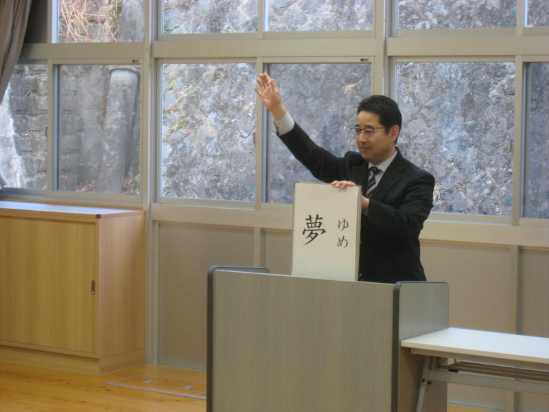 「夢」は、自分の努力によって必ず実現できるものであること、「夢」を実現できると自分自身に自信が持てるようになり、また次の「夢」に向かって努力できるようになることを話し、「夢」を「夢」で終わらせず、必ず実現させて終わらせて欲しいという話で結びました。