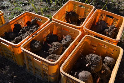 田人公民館、地元でコンニャクを作っている緑川さんにお世話になって、小学生全員で5月に植え、11月に収穫したコンニャク芋。
