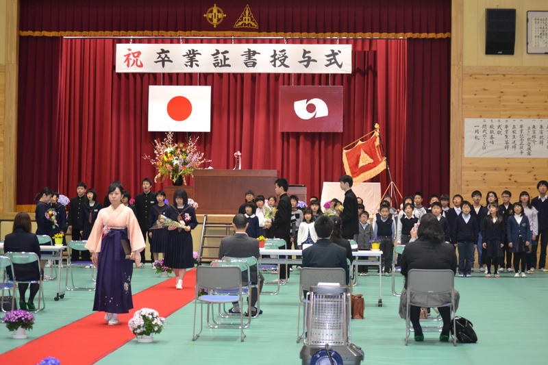 13日(水)の中学校の卒業式では、たくさんのご来賓の方々、そして保護者の皆様にお越しいただき挙行することができました。5人の卒業生は、今までの3年間の思いをこみ上げながら、担任の先生や保護者の皆様に、感謝の気持ちを精一杯伝えることができました。