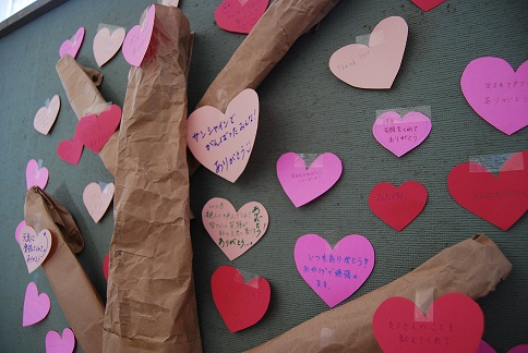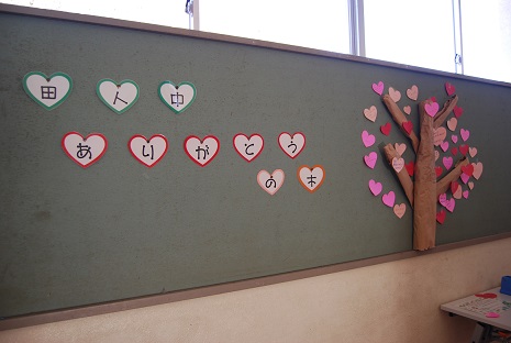2016年2月16日 11時50分 田人中学校に「ありがとうの木」ができました。友達、おうちの人、お世話になっている人たちへの感謝の気持ちが書かれています。外はまだまだ寒いですが、田人中には「ありがとうの花❀」が咲き誇っています。
