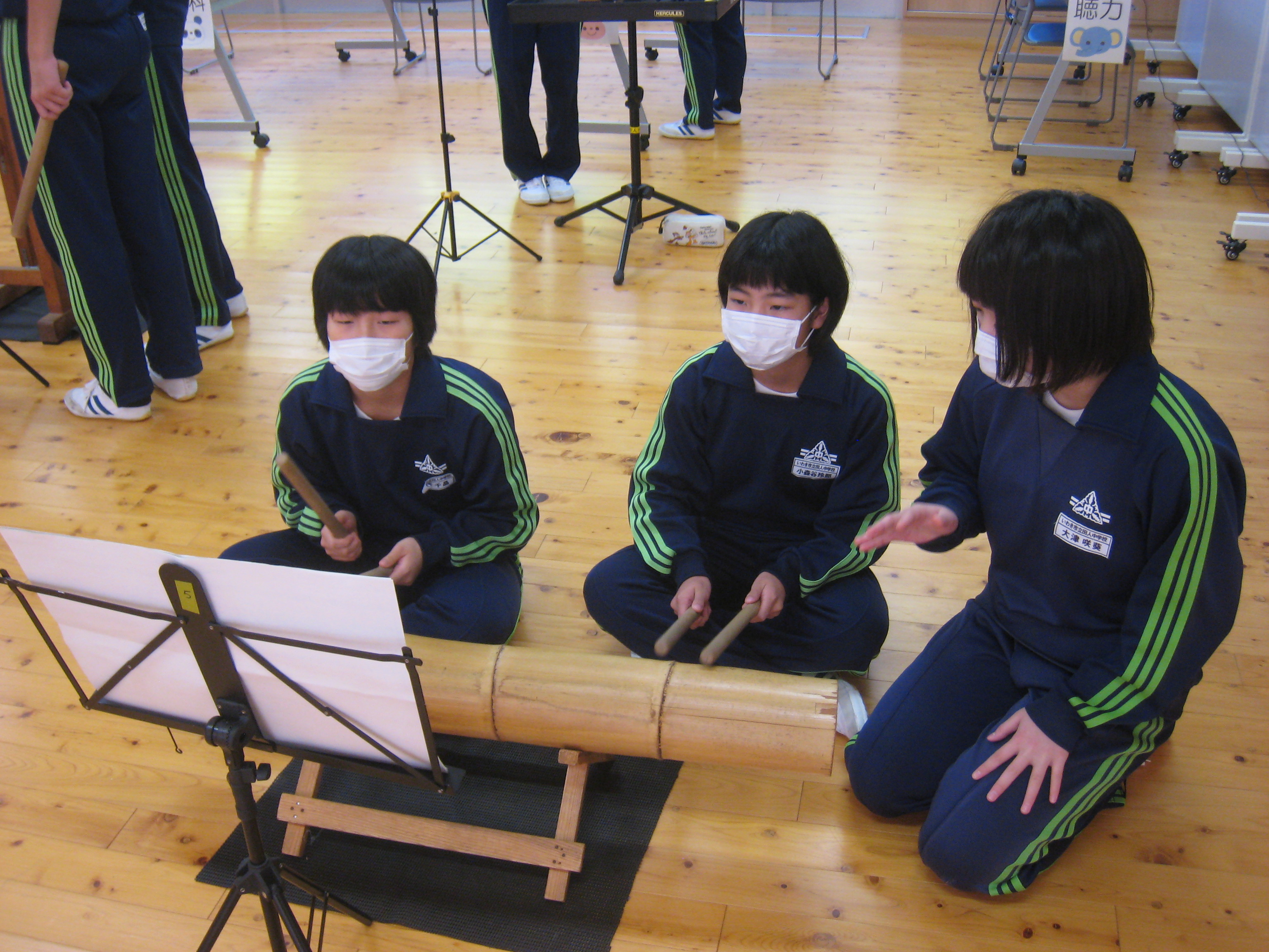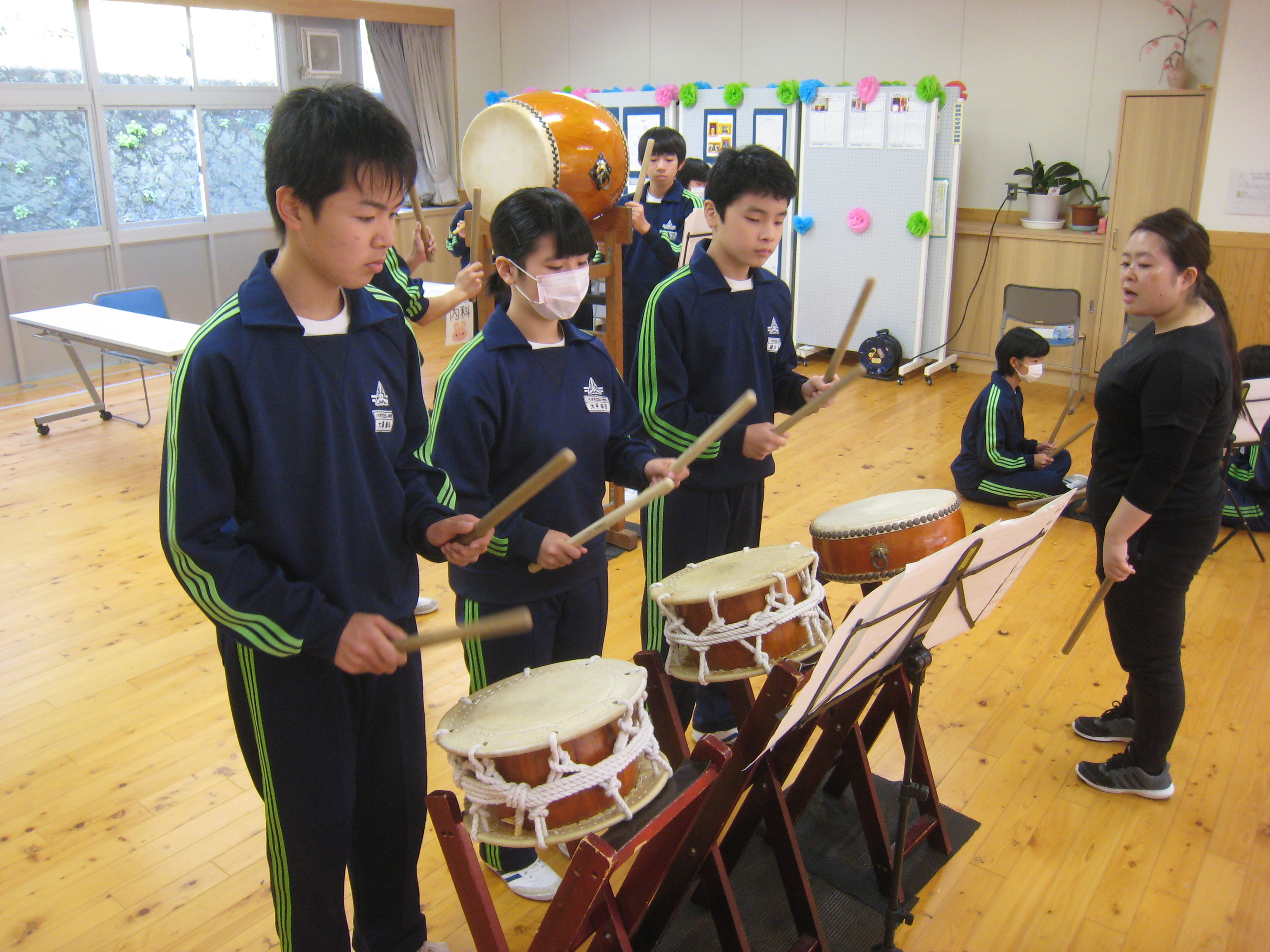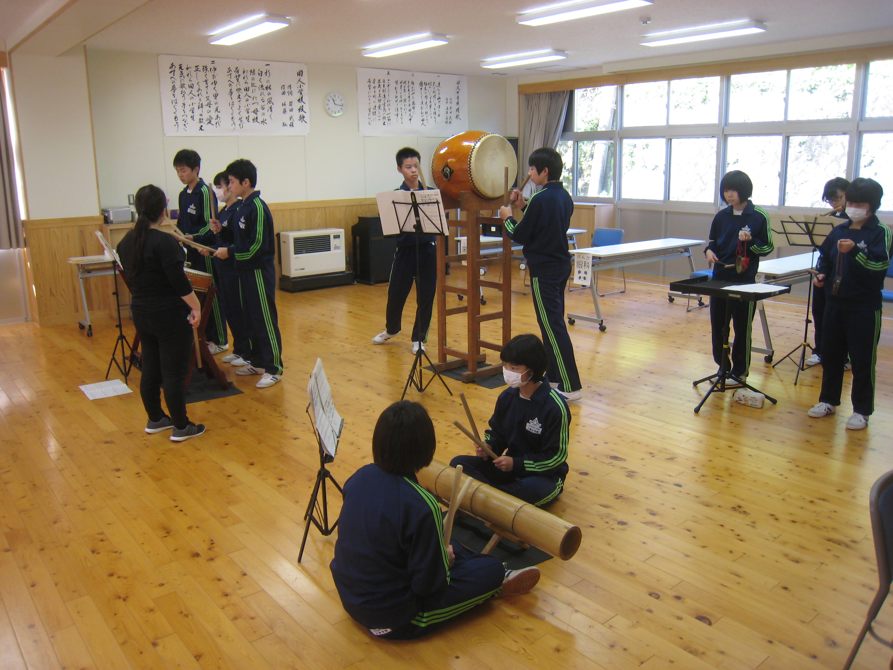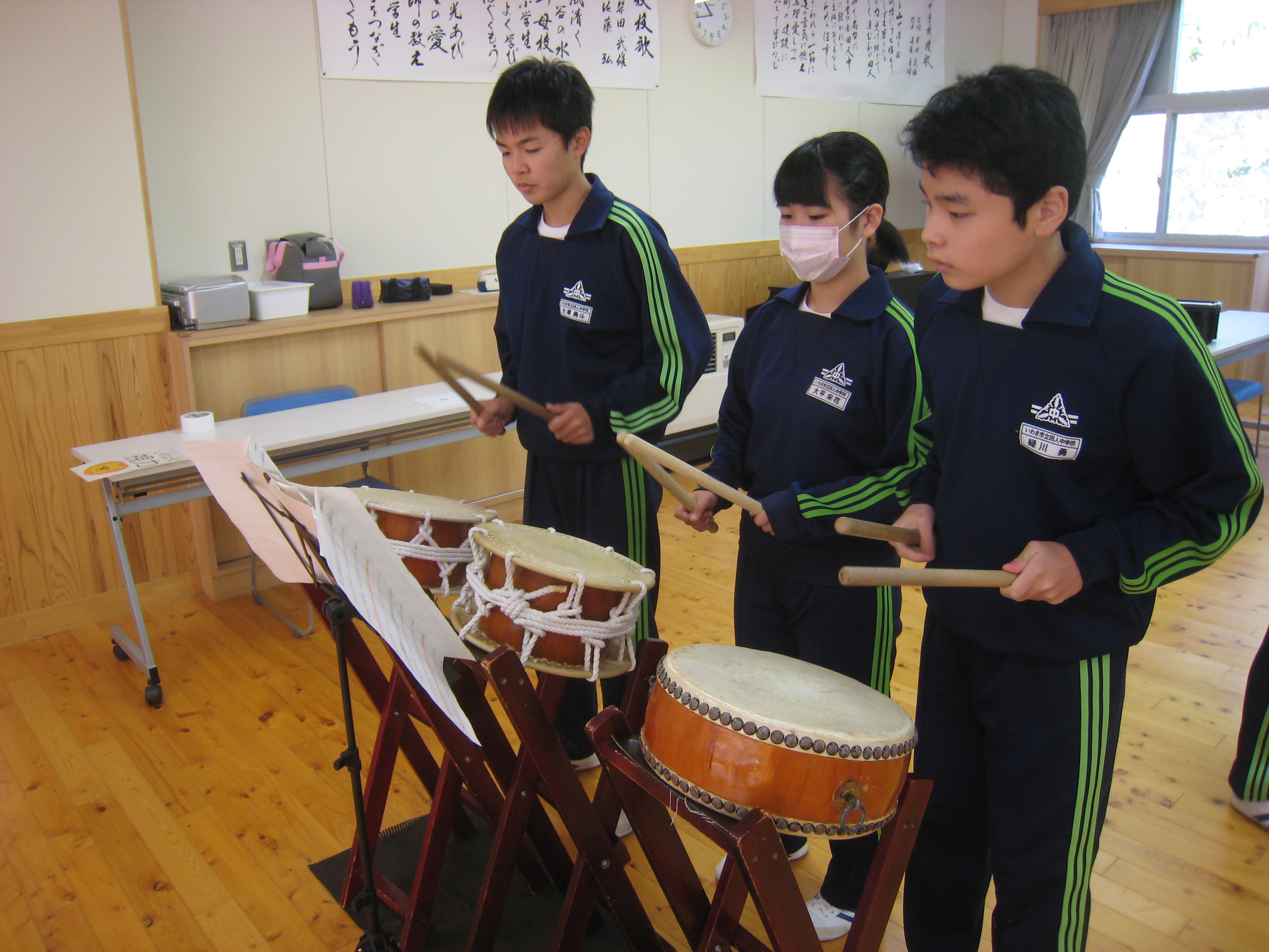 文化祭が終わったのもつかの間。次は、田人太鼓の練習です。「ほっこり祭」(田人地区復興祭)で田人太鼓を披露するため、3年生が1・2年生に熱心に指導してくれています。1・2年生も、一生懸命練習に取り組んでいます。