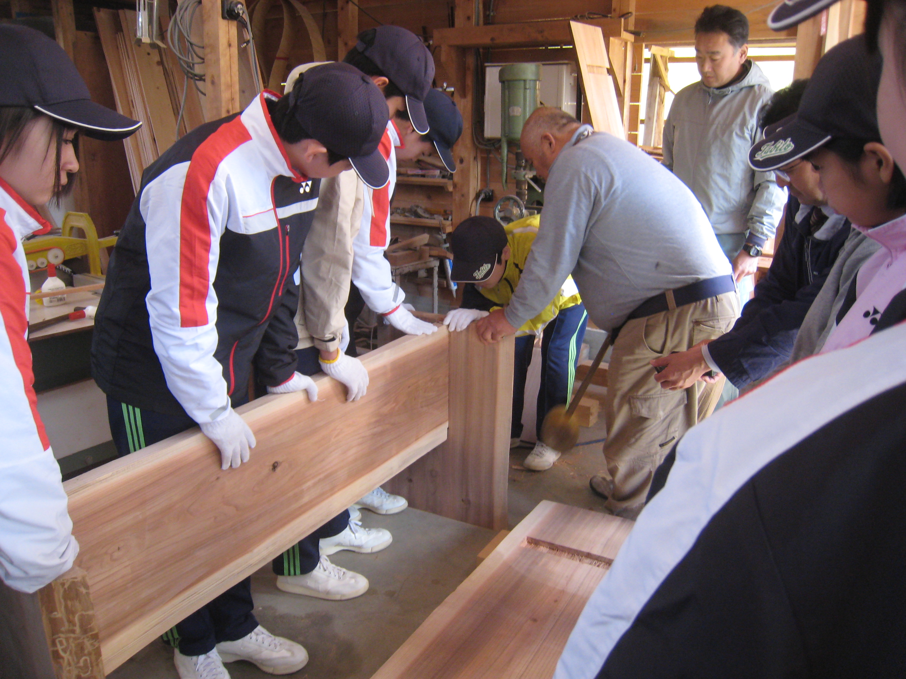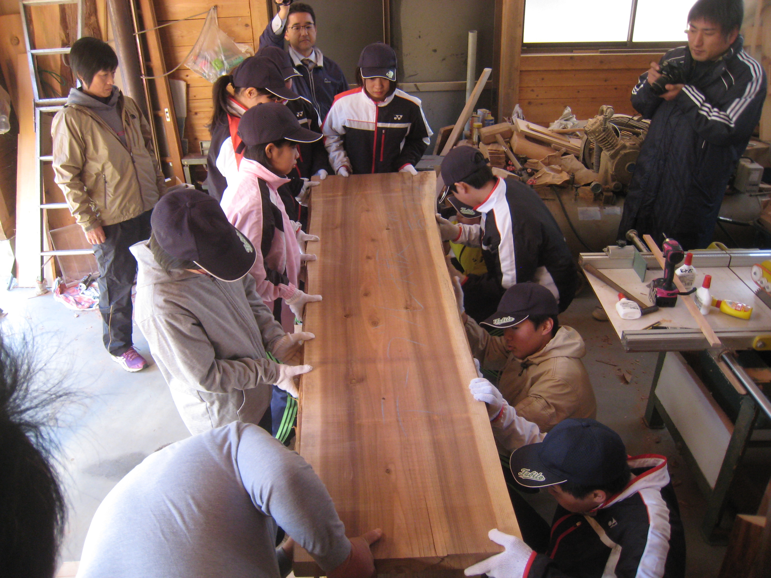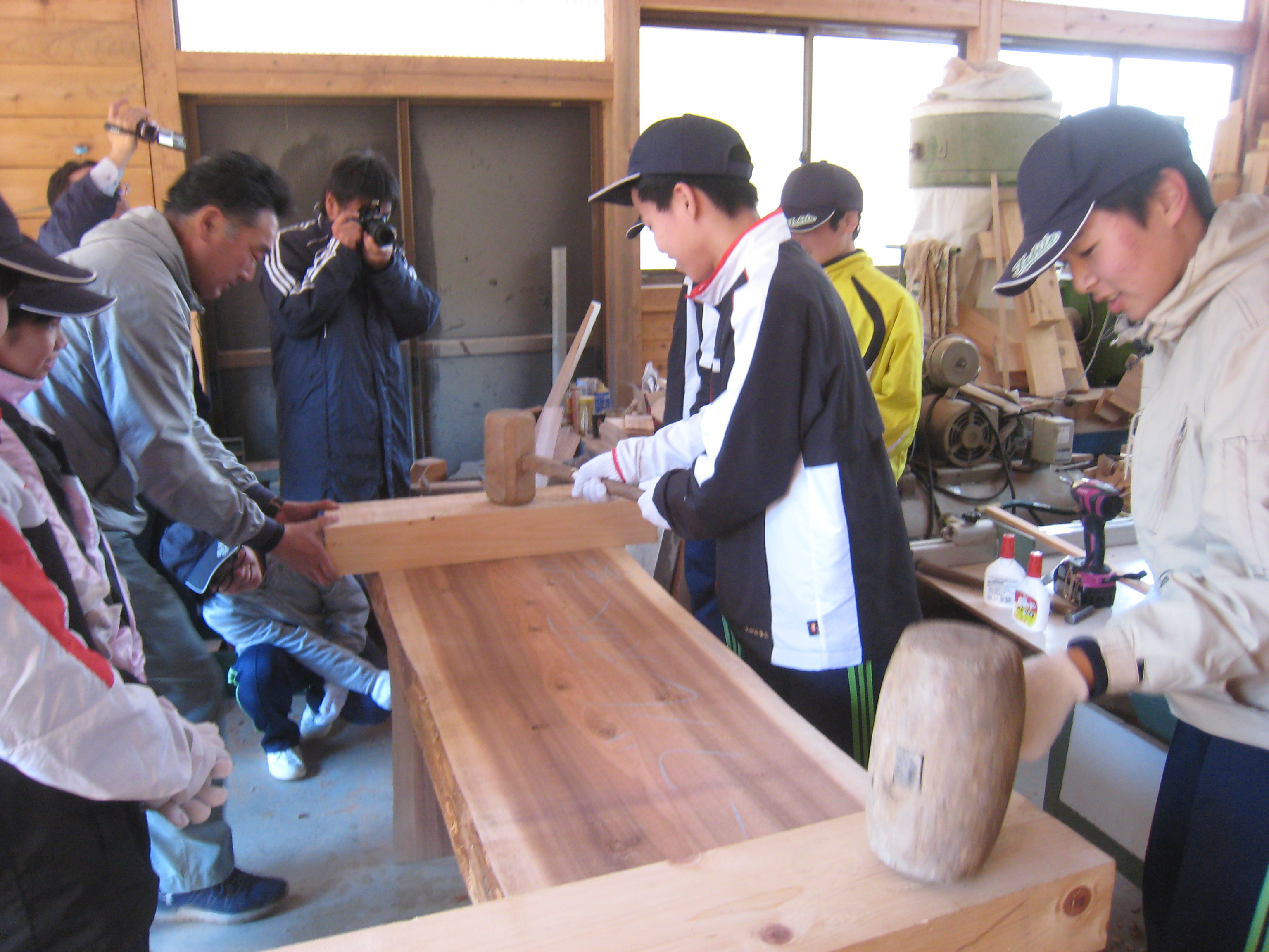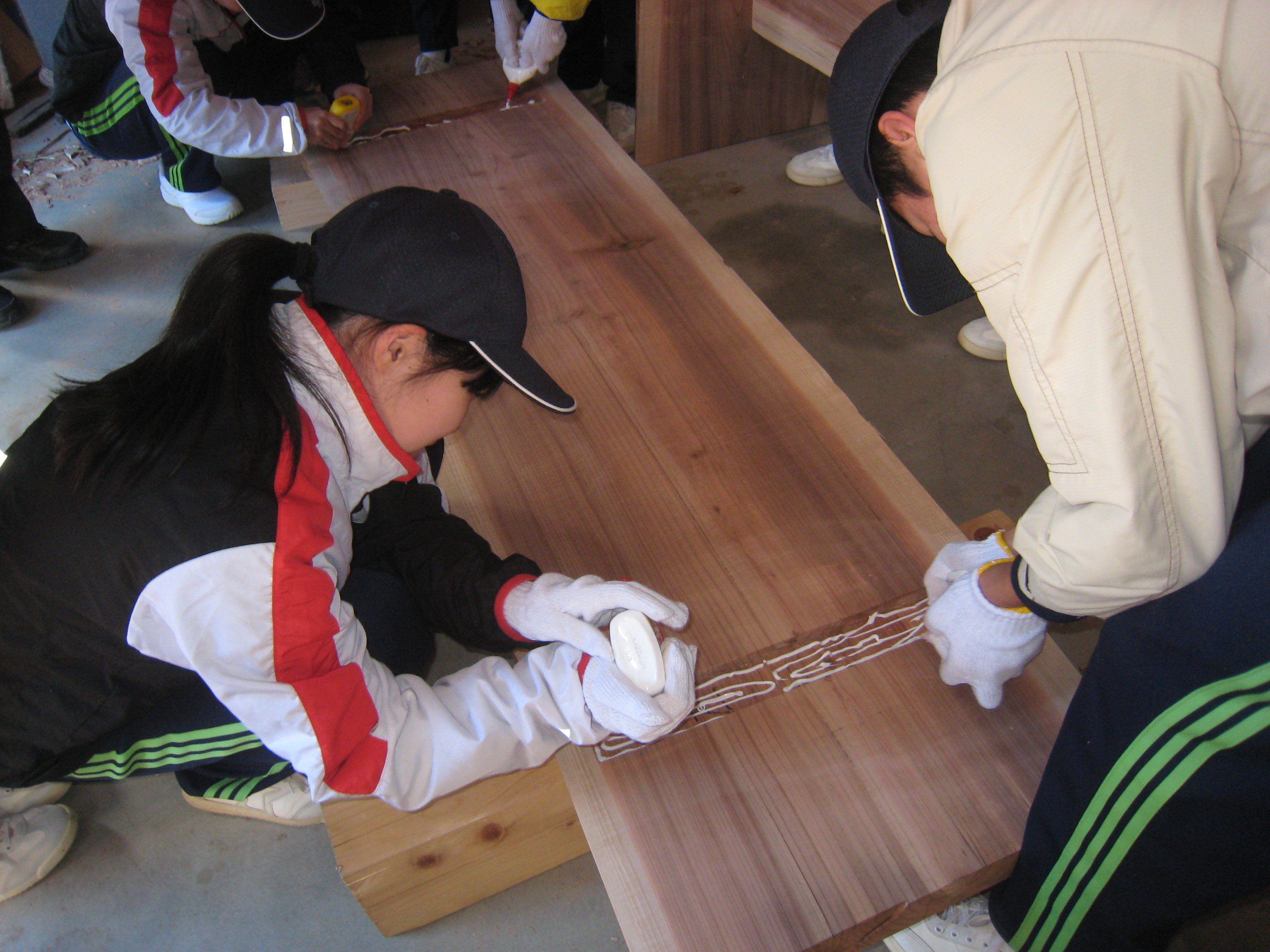 次回はテーブルの「仕上げ」と、ベンチの「組み立て」です。次回の仕上げに備えて、最後にグラインダーを使う練習をしました。