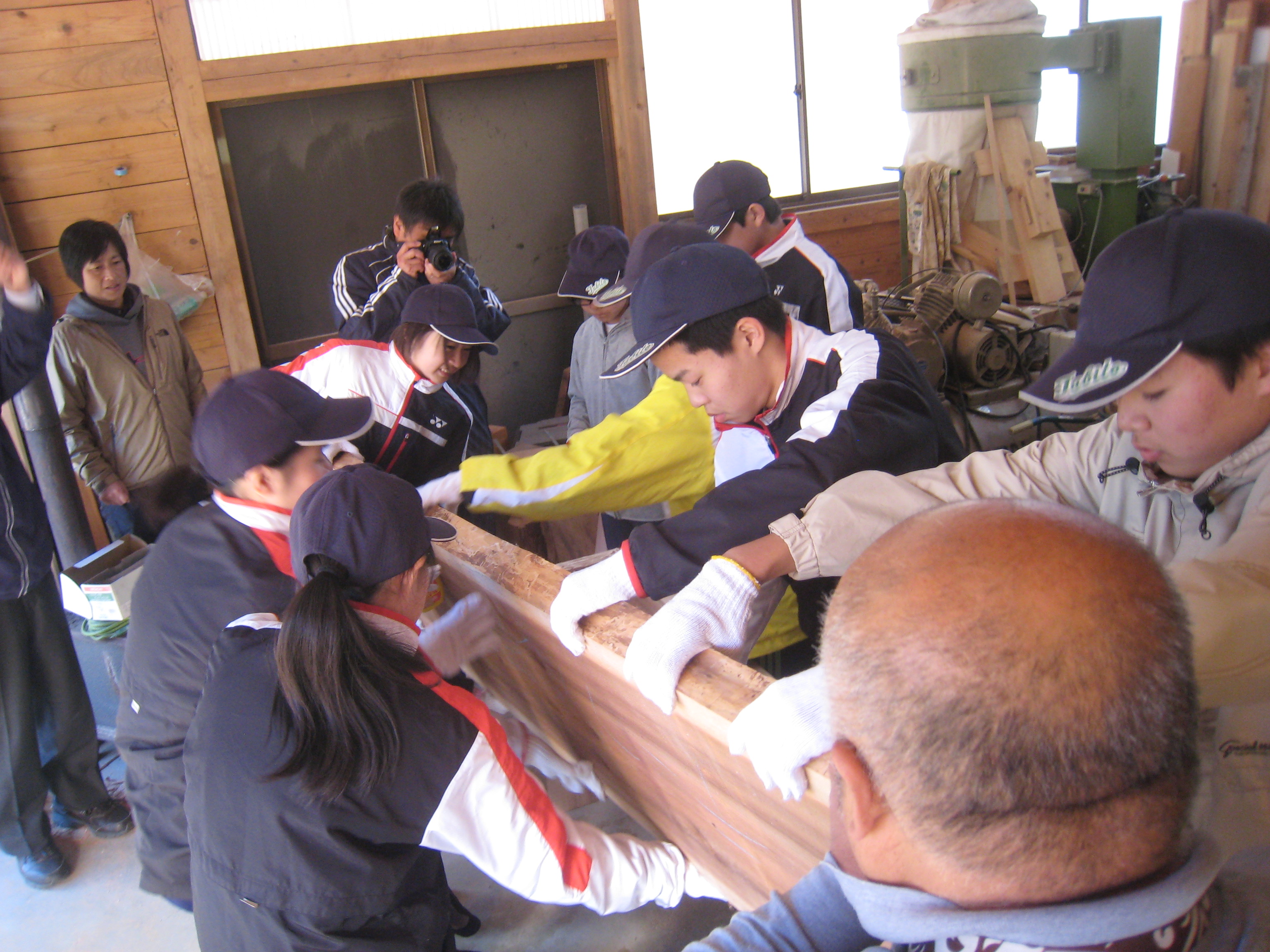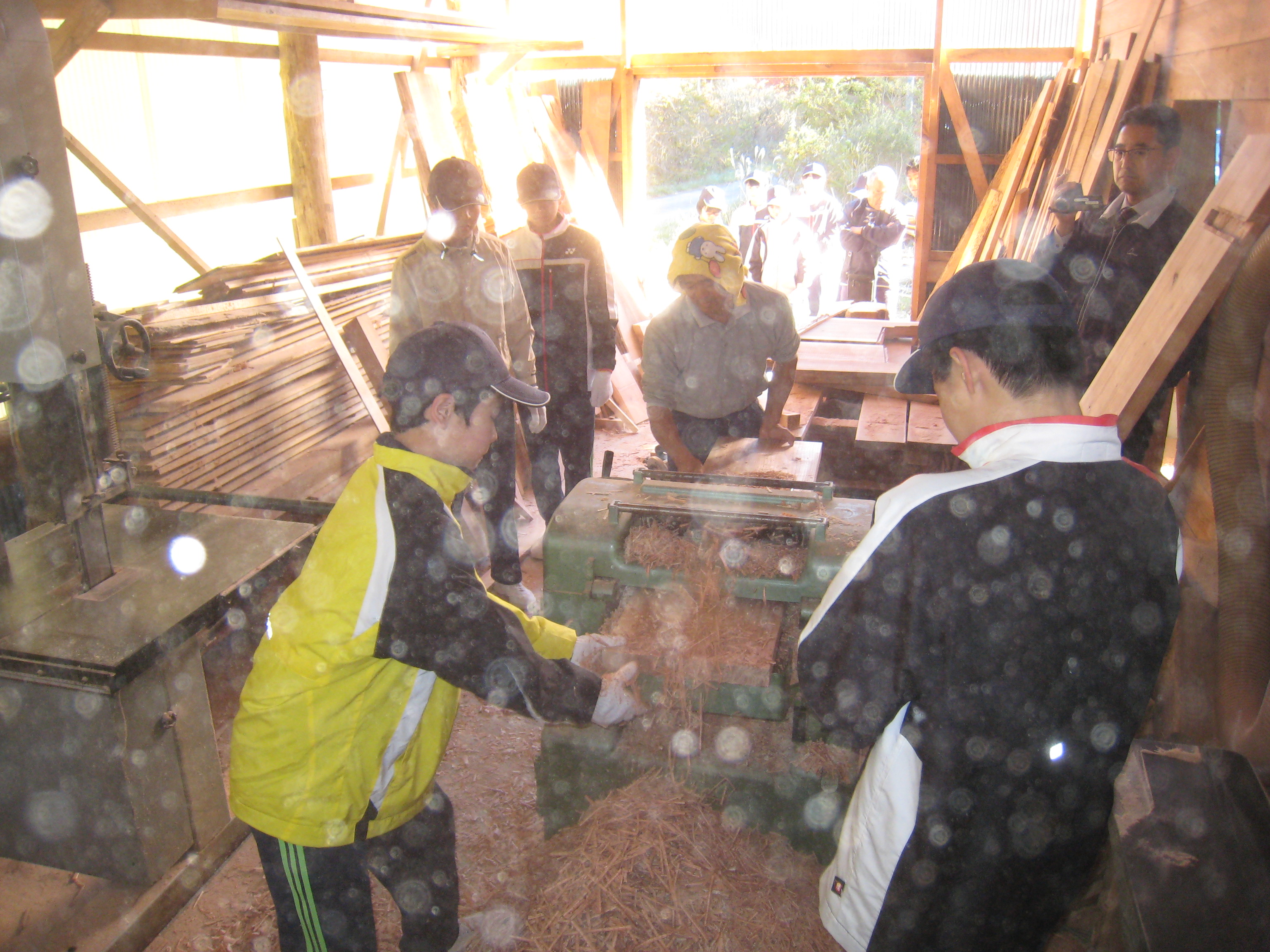 2018年10月31日 17時50分今日は、ベンチ作り3回目の作業です。前回と同じく、豊田林業さんの作業所(田人町荷路夫)で活動を行いました。