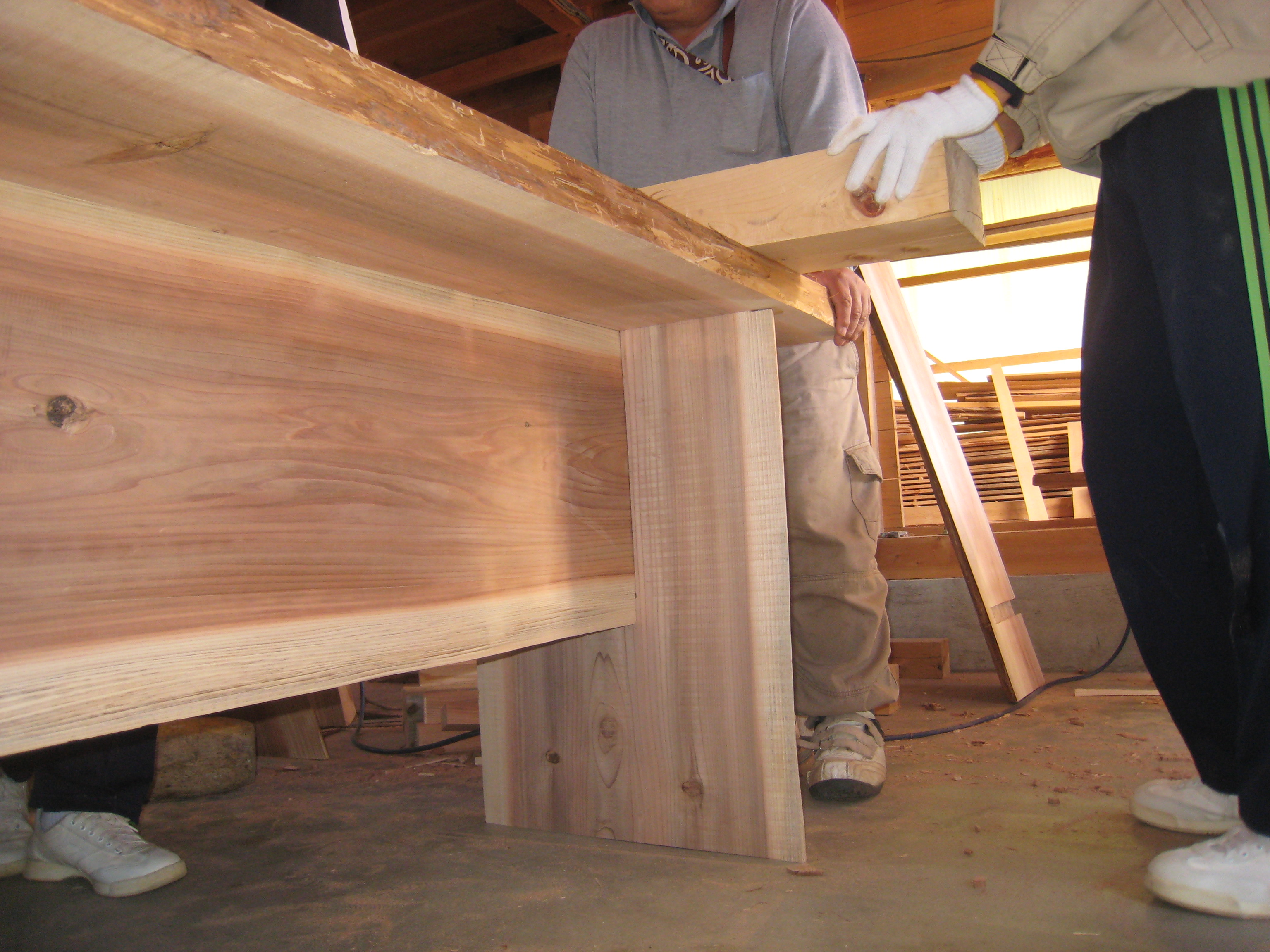 みんなで天板を乗せ、仮の「組み立て」は成功。